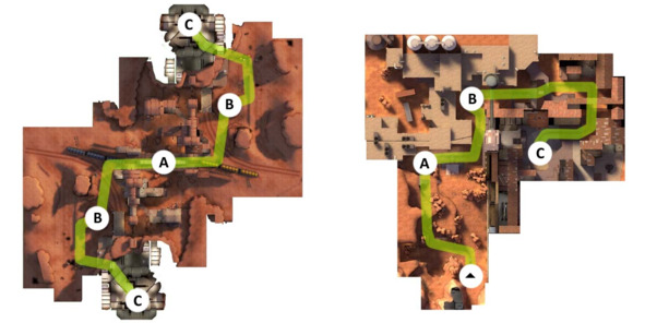 Время прибытия обеих команд на место самого первого столкновения специально рассчитывается так, чтобы защитники имели небольшое преимущество и были готовы к отражению атаки. Вместе с тем, чтобы уравновесить баланс сил, вокруг первой контрольной точки всегда есть множество обходных путей и укрытий, что играет на руку атакующей стороне.