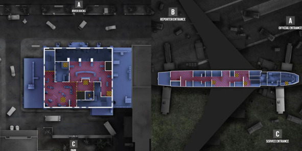 Планировки с ярко выраженным центральным элементом в виде здания и несколькими точками доступа внутрь являются визитной карточкой уровней из Rainbow Six: Siege (2015, Ubisoft Montreal). Конечно же, обороняемой локацией может быть всё что угодно – от припаркованного самолета до движущегося поезда.