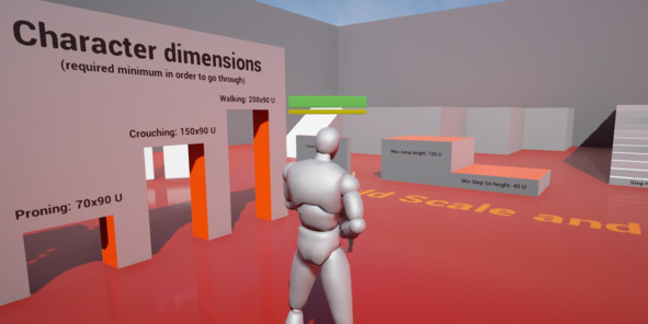 Чтобы в дальнейшем облегчить жизнь дизайнера уровней, стоит также потратить время на создание простых моделей-помощников, при помощи которых проверяют соответствует ли окружение принятым метрическим стандартам.