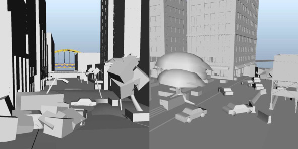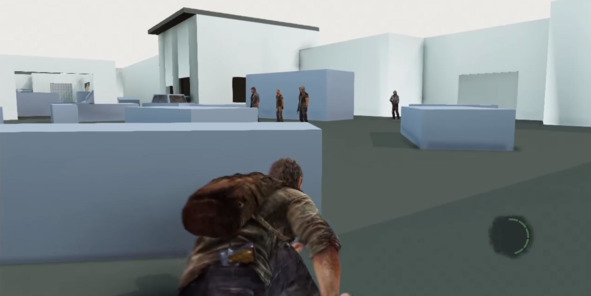 Например, на скриншоте ниже показан набросок уровня из The Last of Us (2013, Naughty Dog), в котором главные герои идут к мосту через деловой центр Питтсбурга.