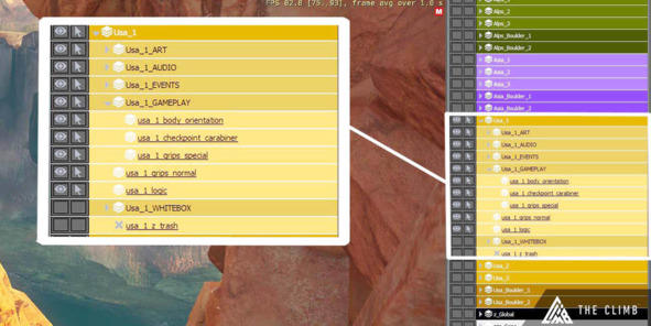 На изображении ниже можно видеть структуру слоев игры The Climb (2016, Crytek). Обратите внимание на последний слой в списке – он используется для хранения временной геометрии, которая в дальнейшем убирается простым удалением слоя.