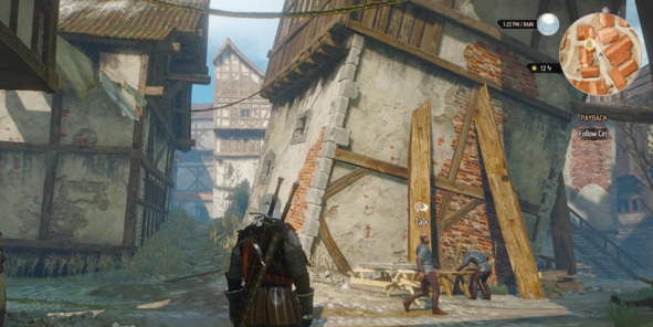 При создании окружения в The Witcher 3: Wild Hunt (2015, CD Projekt RED) разработчики продумали то, как персонажи реагировали бы на те или иные особенности игрового мира. К примеру, в Новиграде можно найти покосившийся на бок дом, который от падения удерживают специальные деревянные подпорки. Жители дома приспособились к этой особенности и исправили недостатки накрененного пола, выровняв мебель за счет подложенных под них предметов.