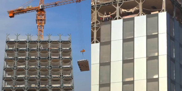 Сборка модульных компонентов здания © Кадры из видео Broad Group