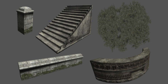 Конечно, в сцене присутствуют и уникальные образцы, но 90% всего игрового окружения создано именно из переиспользуемых модульных элементов: