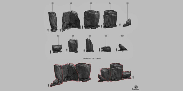 Модульный принцип очень хорошо работает с натуральными структурами, такими как куски скал и камней. Совмещая, вращая и масштабируя всего нескольких модулей, можно с успехом декорировать большую часть игрового мира.