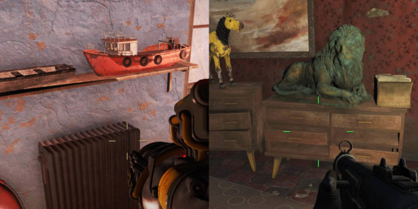 В этом плане больше всего впечатляет то, с какой фантазией дизайнеры из Bethesda Game Studios подходят к декорированию окружения. Их игры Fallout 3 (2008), Skyrim (2011) и Fallout 4 (2015) служат отличным примером того, как нужно планировать модульный контент, чтобы затем его эффективно переиспользовать на протяжении всей игры. Несколько примеров из Fallout 4 (2015, Bethesda Game Studios): 1. Полноразмерные модели лодок выдают за миниатюрные за счет манипуляций с масштабом объекта. 2. Уменьшенную статую льва используют для декорирования помещения.