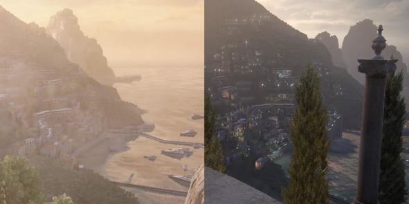 Еще один отличный пример – уровни из Uncharted 4: A Thief’s End (2016, Naughty Dog). В эпизоде с аукционом в Италии мы наблюдаем, как вечер сменяется ночью и в прибрежном городке включается подсветка.