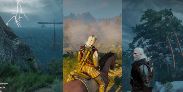 В мире игры The Witcher 3: Wild Hunt (2015, CD Projekt RED) при штормовом ветре деревья гнутся от сильных потоков воздуха, а во время дождя поверхности намокают и становятся блестящими. Погодные явления также влияют на главного героя – его волосы развеваются на ветру, одежда становится мокрой, а на холодных локациях со снегом можно видеть пар изо рта.