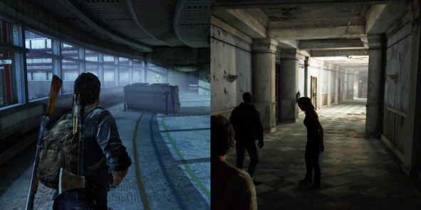 Еще один пример – уровень из The Last of Us (2013, Naughty Dog) с покосившимся небоскребом в центре Бостона. Небольшой наклон всего здания сделал изначально скучные помещения в разы реалистичнее и атмосфернее, так как большинство мебели съехало по наклонной вниз.