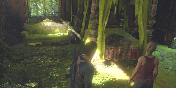 Исследуя затерянный пиратский город Новый Девон в Uncharted 4: A Thief’s End (2016, Naughty Dog), можно насладиться тем, во что за последние двести лет природа превратила роскошные интерьеры. Детализация локации настолько впечатляет, что у игрока не возникает никаких сомнений в том, что это место реально.