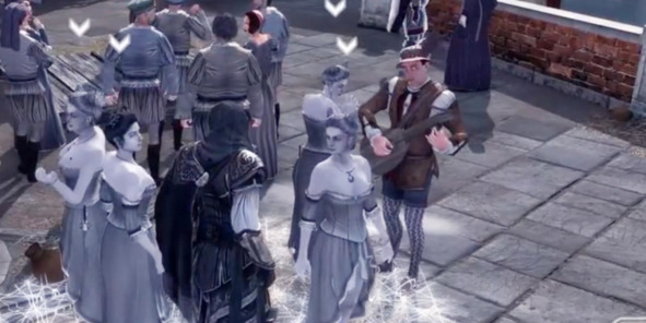 Еще один отличный пример – барды из Assassin’s Creed II (2009, Ubisoft Montreal). Их назойливое желание преградить путь главному герою и сыграть мелодию за копеечку не только создает множество забавных ситуаций, но и положительно влияет на атмосферу.