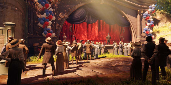 Например, в Bioshock Infinite (2013, Irrational Games) игрок прибывает в летающий город в самый разгар народных гуляний и посещает праздничную ярмарку, где наблюдает веселящихся горожан. Скопления людей, веселая музыка и многочисленные аттракционы создают отличную атмосферу праздника.