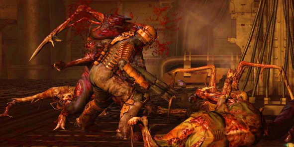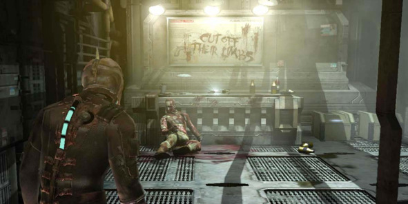 В Dead Space (2008, Viceral Games) игрок исследует космический корабль, экипаж которого был уничтожен жуткими некроморфами. На одном из уровней можно встретить надписи на стенах, подсказывающие о самом эффективном способе борьбы с монстрами – отсечением конечностей.
