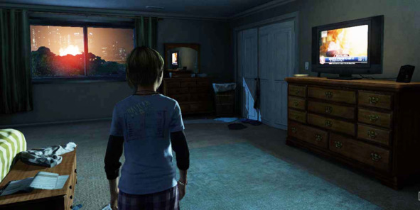 В самом начале игры The Last of Us (2013, Naughty Dog) дочь главного героя просыпается посреди ночи и начинает искать своего отца. Исследуя окружение, она натыкается на свежие газеты, заголовки которых рассказывают о неизвестной эпидемии охватившей мир. В гостиной комнате девочка смотрит трансляцию прямого эфира с места, где начались беспорядки с участием инфицированных людей.