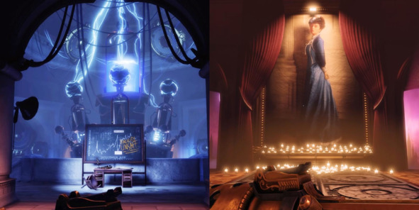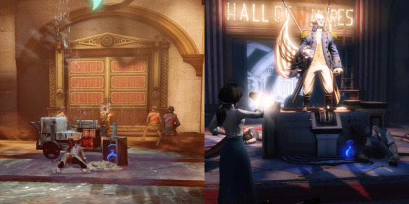 Самым ярким примером могут послужить уровни из BioShock Infinite (2013, Irrational Games), где развилки являются чуть ли не основным местом подачи сюжета посредством игрового окружения.