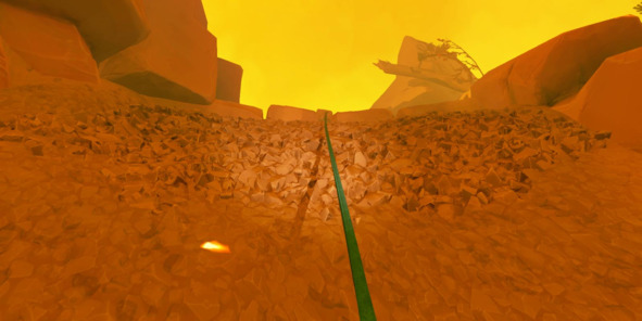 В игре Firewatch (2016, Campo Santo) главный герой периодически использует веревку, чтобы перемещаться вверх или вниз по отвесным скалам. Вершина склона всегда очень хорошо детализирована, так как взгляд игрока в большинстве случаев сфокусирован на конце веревки.