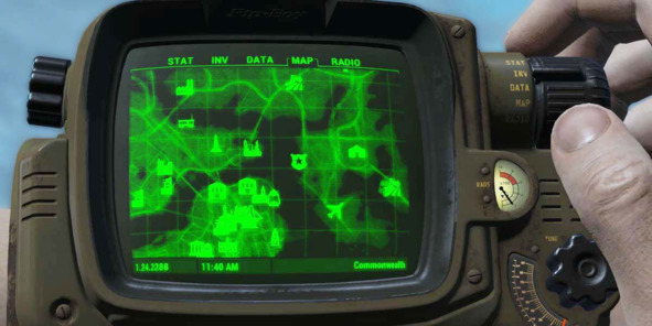 Так, в Fallout 4 (2015, Bethesda Game Studios) главный герой носит с собой мини-компьютер «Пип-бой 3000», показывающий глобальную карту и детальный план локации. Устройство отлично справляется с ролью проводника в большом открытом мире, но требует нажатия специальной клавиши для доступа к нему. Постоянное переключение между экраном игры и меню с навигатором негативно влияет эффект погружения.