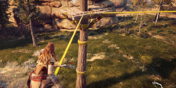 В Horizon Zero Dawn (2017, Guerrilla Games) разработчики маркируют объекты на пути игрока ярко-жёлтым цветом. Таким образом, все акробатические маршруты стали легко читаемыми даже на расстоянии, что сделало навигацию по миру игры проще и понятней.