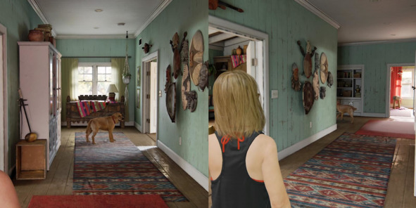 В финальном эпизоде Uncharted 4: A Thief’s End (2016, Naughty Dog) мы исследуем хижину Дрейка и Елены на берегу моря. Исследуя помещение за помещением мы оказываемся на развилке. Один путь ведет к выходу из дома, второй – в тупиковую комнату. Чтобы заставить игрока заглянуть в тупиковую комнату разработчики используют специальный трюк с собакой.