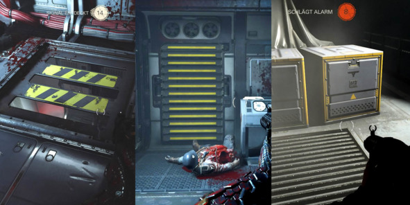 Если взглянуть на уровни Wolfenstein II: The New Colossus (2017, MachineGames), то мы увидим, что для маркировки всех интерактивных объектов (ящики с полезными предметами, вентили, разбиваемые решетки и двери) разработчики используют ярко-желтый цвет. На первый взгляд всё выглядит хорошо, в чем же проблема?