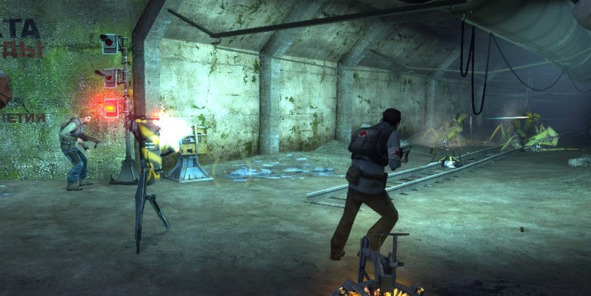 В качестве примера можно взять уровень из Half-Life 2: Episode Two (2007, Valve) с обороной тоннелей шахты от своры гигантских жуков. Главный герой помогает группе повстанцев сдержать атаку и защитить раненную напарницу.