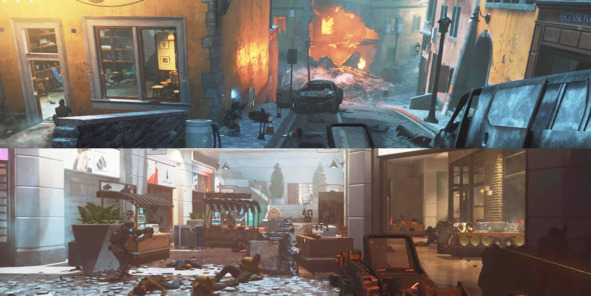 Большинство перестрелок в Call of Duty: Infinite Warfare (2016, Infinity Ward) выполнены по классической формуле с четко выраженной линией фронта, проходящей через открытое пространство (улица, большое помещение) и возможностью захода с фланга через альтернативный маршрут (интерьеры зданий, коридоры).
