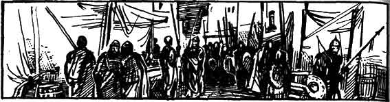 За домами тянулся ряд скотных дворов, конюшен и амбаров. Свободные землепашцы и скотоводы, керлы, жили в степи, каждая семья своим отдельным хозяйством, и прибегали в городок, когда на сторожевой насыпи ночью загорался костер или когда днем над ней развивался стяг их главаря – владельца городка. Между хозяйствами керлей бывало часто расстояние в пятьдесят стадий и больше.
