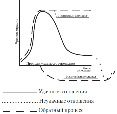 Страсть обладает позитивным потенциалом, который реализуется быстро, и негативным потенциалом, который реализуется намного медленнее и влияние которого ощущается дольше, поскольку душевная боль остается после того, как проходит любовь. В конечном счете негативный потенциал возвращается к исходной точке.
