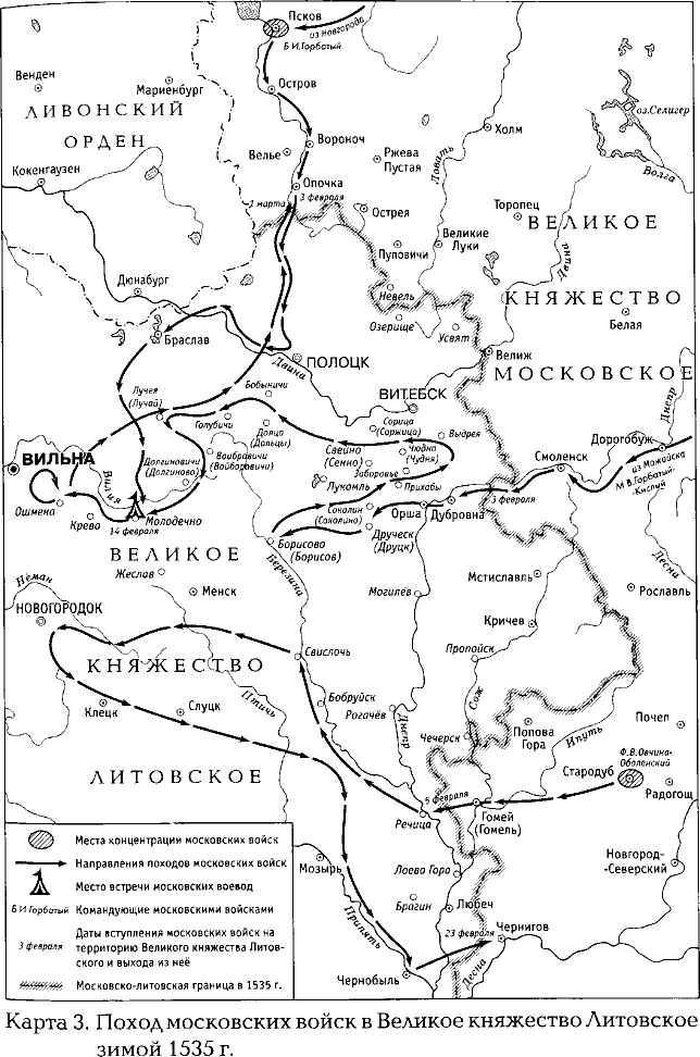[Закрыть] , оставив за собой сожженные села и посады, но не удержав ни пяди земли. Это был именно ответ на подобный же набег литовцев. Но от последнего он отличался своим масштабом: осенняя кампания 1534 г. представляла собой серию налетов на пограничные земли и крепости, русские же воеводы зимой 1535 г. дошли, не встречая сопротивления, до самой столицы Великого княжества Литовского – это был грозный симптом упадка былой военной мощи литовской державы. По словам Карамзина, лишь «государственная слабость Литвы объясняет для нас возможность таких истребительных воинских прогулок» 266266