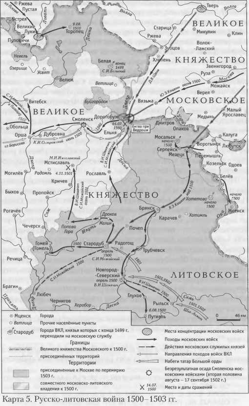 [Закрыть]. 6 августа 1500 г. воеводами при участии новых «слуг» Ивана III был взят южный форпост Северской земли – Путивль; на смоленском направлении тогда же был взят Дорогобуж [481]481