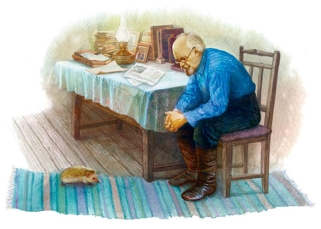 Так вот и устроился у меня жить ёжик. А сейчас я, как чай пить, непременно его к себе на стол и то молока ему налью в блюдечко – выпьет, то булочки дам – съест.
