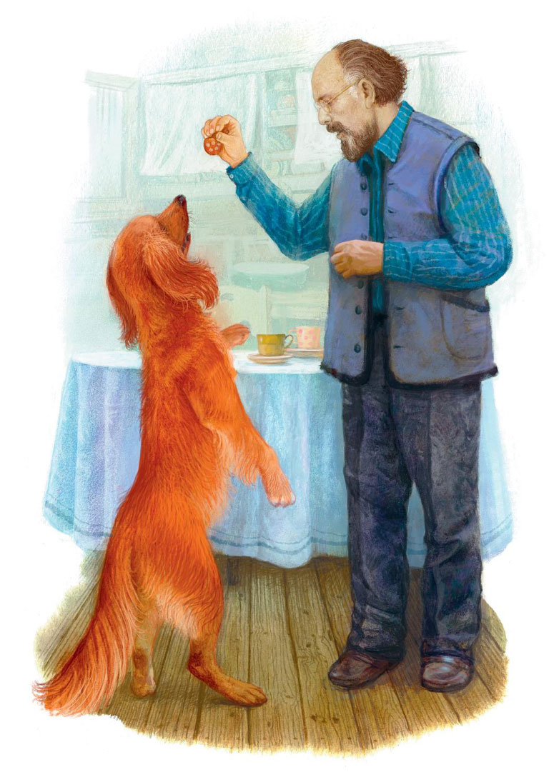 Привыкла к нему жена, как к своему собственному ребёнку, и без него ей уже скучно, без него никуда. Но только ежели случится – нет его, крикнет только одно: «Фру-фру!», и он к ней бежит. Такой умница!