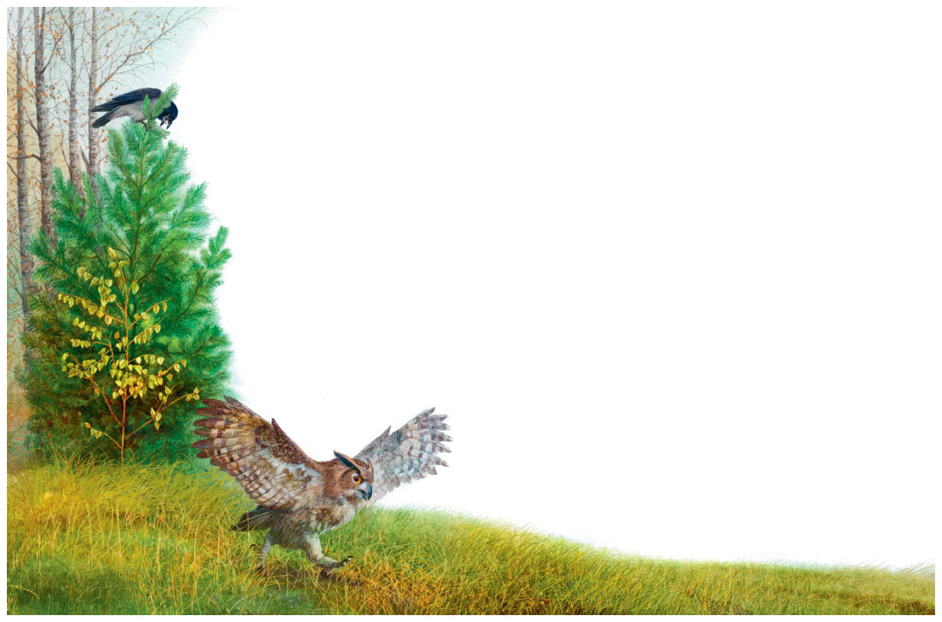 И когда филин выбежал из-под ёлки и стал на крыло, опять вороны крикнули: