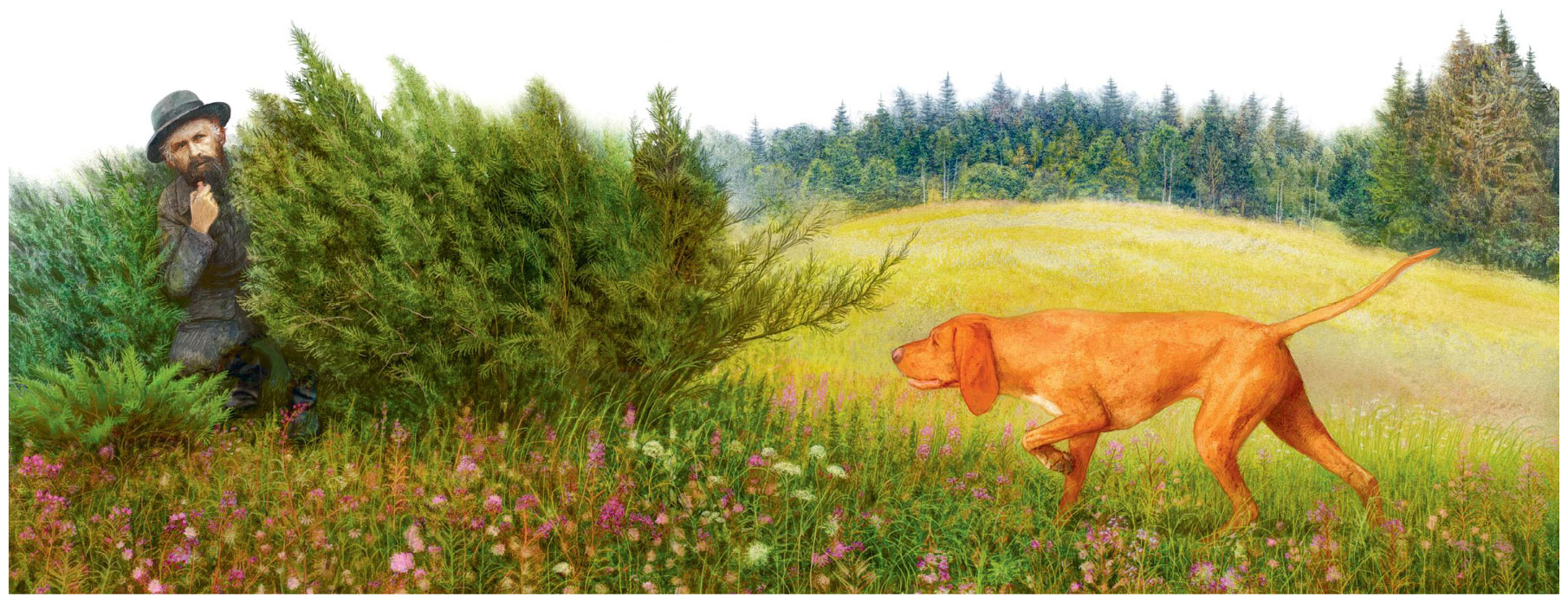 И я должен знать, что, если собака не вернулась с правой руки, значит, где-нибудь она вблизи почуяла дичь и стала по ней. Особенно хорошо бывает следить за собакой, когда идёшь просекой, собака то и дело пересекает тропу.