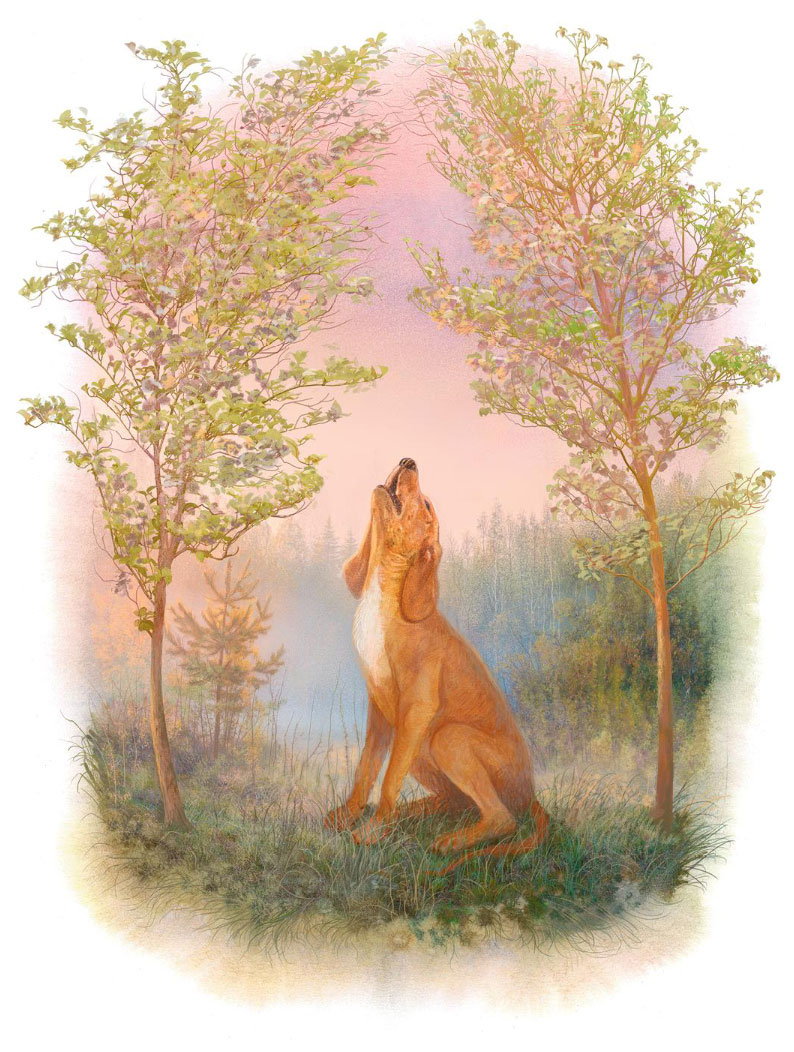 Но вдруг где-то около деревни собака скололась, гон прекратился, и очень скоро возвратился Трубач, очень смущённый, с опущенным хвостом, и на светлых пятнах его была кровь (мастью он жёлто-пегий в румянах).