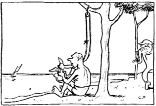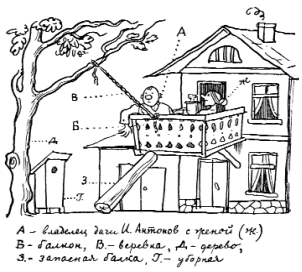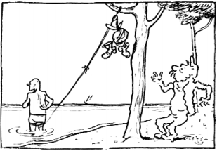 Узелок с бельем подвешивается на ближайшее дерево. Свободный конец привязывается к ноге купающегося. По мере удаления владельца от своего имущества – узелок естественными силами природы подтягивается выше и выше. По мере выхода купающегося из воды – узелок с кальсонами и другим носильным бельем гармонично опушается книзу и дает полную радость своему владельцу.