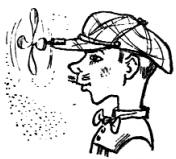 Здесь нами продумана шляпка «Феникс». Легкий пропеллер при ходьбе приходит в движение и рассеивает пыль.