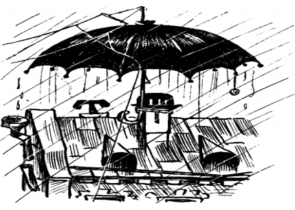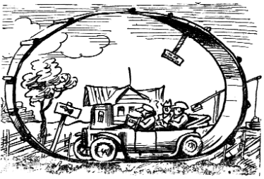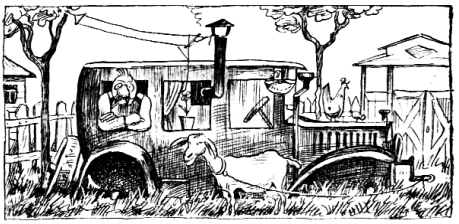 При создавшемся остром положении население принуждено будет оставлять свои машины во дворе дома. Однако, это имеет свои хорошие стороны. Поставленный во дворе автомобиль может служить прекрасным местом отдыха владельца. Жилая площадь может не превышать норму. Крыша не протекает. И зеркальные стекла свободно пропускают ультра-фиолетовые лучи. Если обнести машину частоколом, то получится небольшой уютный домик с садом. Для того, чтобы в ночное время этот домик не угнали, достаточно будет отвинтить колесья. В ненастную, прохладную погоду помещение можно отапливать установленной для этой цели буржуйкой. В садике можно посадить грушу или сирень. По утрам можно на всякий случай привинчивать колесья. Если спешка – можно воспользоваться трамваем. Во всяком случае население должно до конца использовать все возможности, связанные с катастрофически быстрым развитием автомобильной промышленности.
