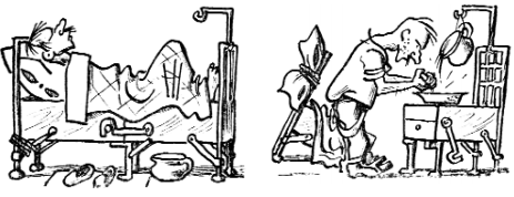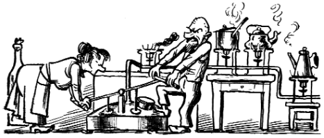 Как известно, примус занимает в нашем быту далеко не последнее место. Иной раз на кухне скапливается до 20 примусов. Домашние хозяйки мечутся, буквально не зная куда поставить аппарат, чтобы вскипятить суп, картошку и так далее. В силу этого происходят нередко шум, крики и потасовка. Иной раз примус служит орудием обороны и нападения.