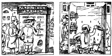Механизация и машинизация нашей жизни понемножку входят в быт. Уже снова отремонтированы автоматы для продажи почтовых марок. И скоро, по примеру Москвы, на улицах появятся автоматы-киоски для продажи разных изделий.