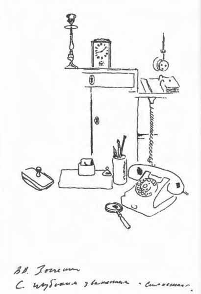 Рисунок кабинета М. М. Зощенко, подаренный В. В. Зощенко в 1966 году. Установить автора этого рисунка не удалось