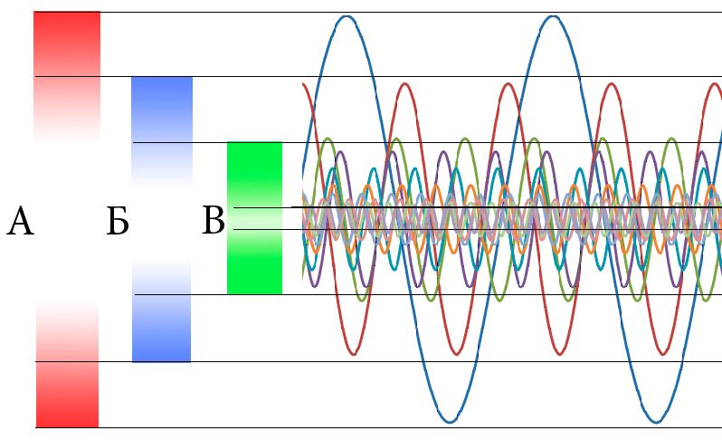 Для наглядности приведу в пример иллюстрацию, показывающую различную степень чувствительности. Изображенные на картинке волны различных частот отображают различные сигналы, которые возникают в окружающем мире. В соответствии с законами физики, при одинаковой мощности сигнала, чем более высокая частота колебаний, тем более низкая будет его амплитуда, то есть тем тоньше должен быть инструмент, который будет распознавать этот сигнал.