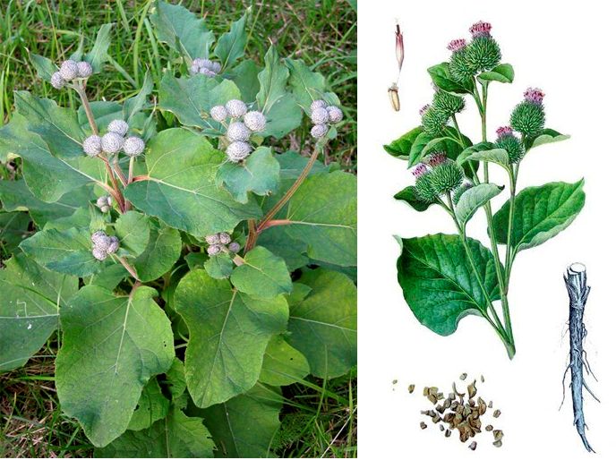 Стебель мощный, прямой, высотой до 1,5 м. Корень стержневой мощный, до 1,5 м длиной. Листья крупные (до 40 см), сердцевидные, очередные, простые. Цветки в корзинках собраны в ветвистое общее соцветие – щитковидное или метельчатое. Плоды – продолговатые семянки, после созревания легко цепляются к шерсти животных или одежде человека.