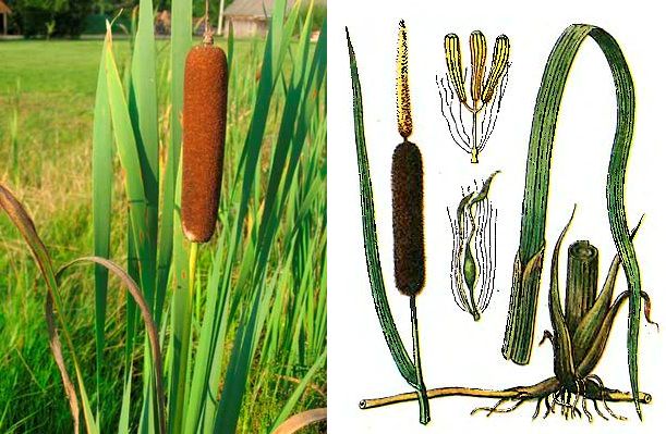 Крупное многолетнее корневищное растение. Стебель обычно до 1 м высотой, но часто достигает 2 м. Корневище толстое, ползучее. Листья обычно около 20 мм шириной, серовато-зелёные. Соцветие – головчатый бархатистый длинноцилиндрический початок. Иногда ошибочно называется «камышом».