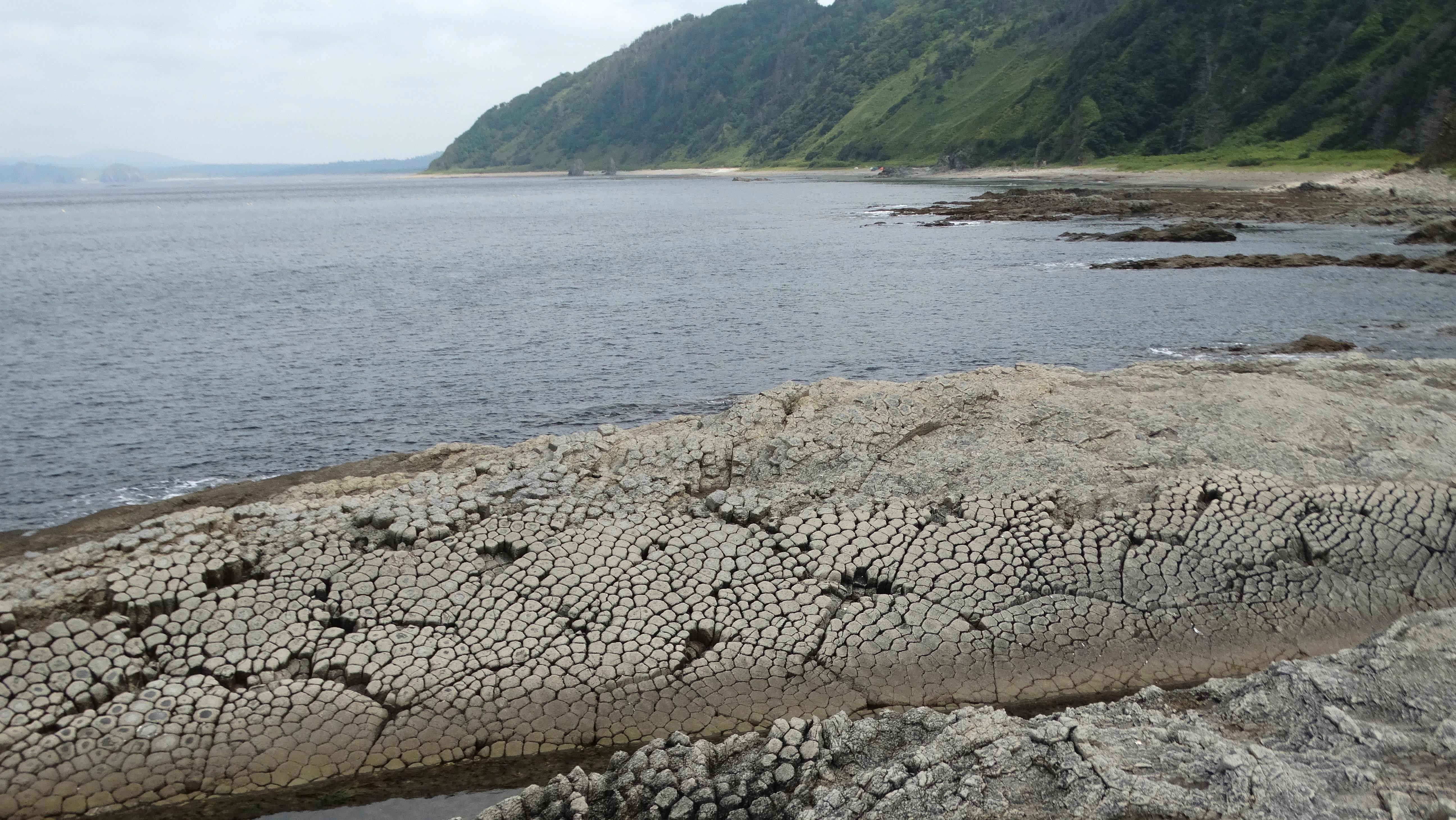 – Кунаширская Мостовая Гигантов, – Тимофей ткнул рукой в уходящую в море дорогу из булыжников, каждый в обхват. – Приливы камни стесали до ровной поверхности!