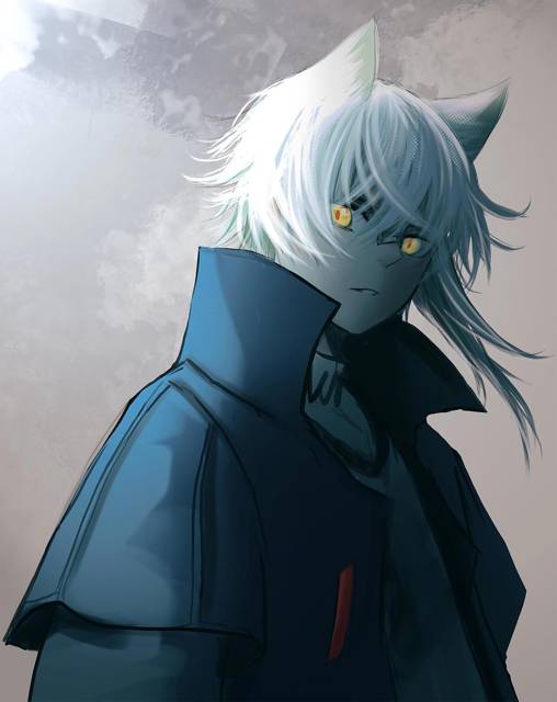 Невысокий нэко-парень. С светло-голубыми, почти белыми волосами. Одетый в чёрную униформу лоли-полиции.