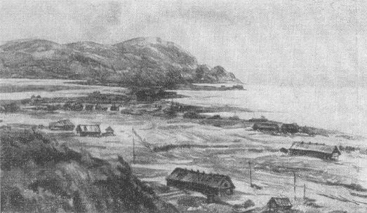 Сахалин. Александровск. Порт. Акварель С. С. Чехова, 1958.