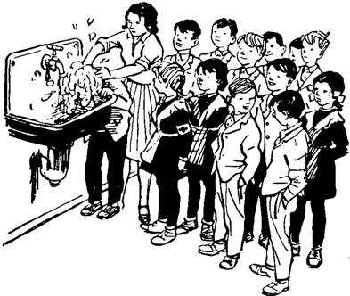 Пионервожатая Галя наклонила над умывальником голову Стаськи и намыливала чуб. Руки у Гали были зелёными. Она тёрла голову Стаськи, поливала из крана водой. Стаська негромко стонал, жаловался, что вода холодная и течёт за воротник.