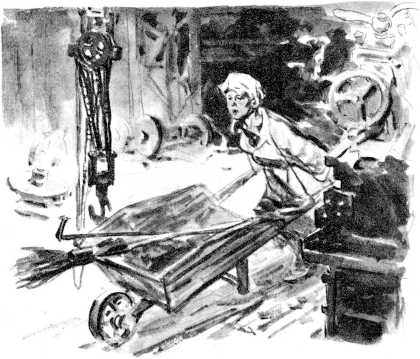И Лёнька, гремя тяжёлыми сапогами, катил тачку от станка к станку, убирал, подметал и опять катил, наваливаясь на неё грудью, и опять подметал, выскребал и чистил.