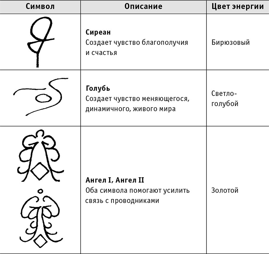 Еще два символа «приписаны» к ангелам-хранителям системы, которые «отвечают» за чистоту и передачу энергии, способствуют в лечении (особенно на расстоянии).